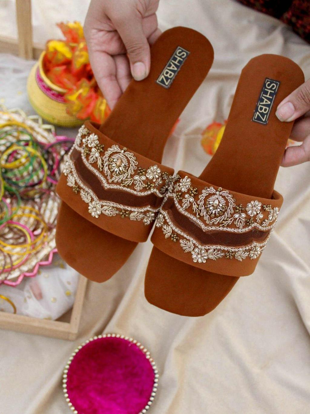 Made with premium leatherette cushioning, these slides provide a soft and comfortable feel with every step. The slight heel adds gentle support, making them perfect for long festive days, dinners, and special occasions.