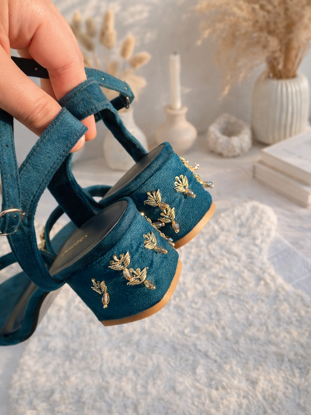 Step into the realm of opulence with our breathtaking luxe velvet heels, where every detail is a testament to exceptional craftsmanship. These majestic heels are adorned with intricate handwork, featuring: